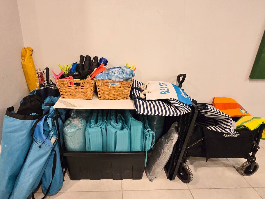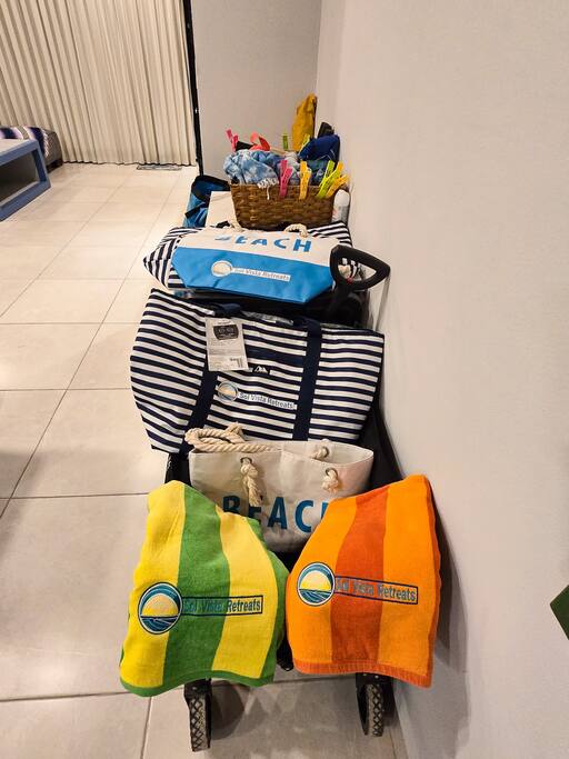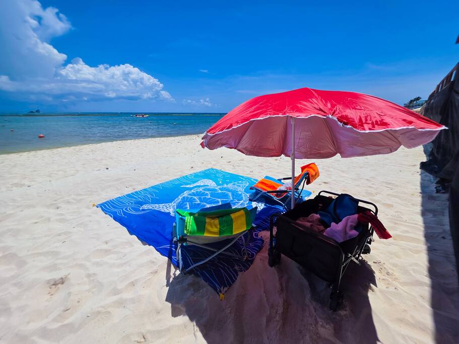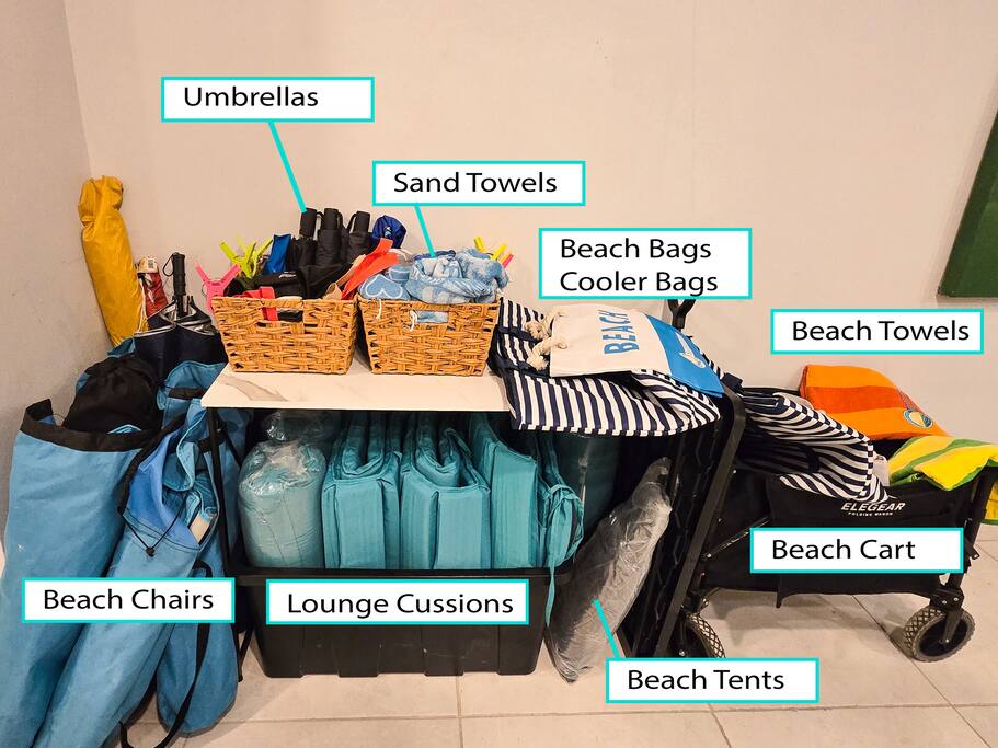- Beach essentials Beach towels, umbrella, beach blanket, snorkeling gear