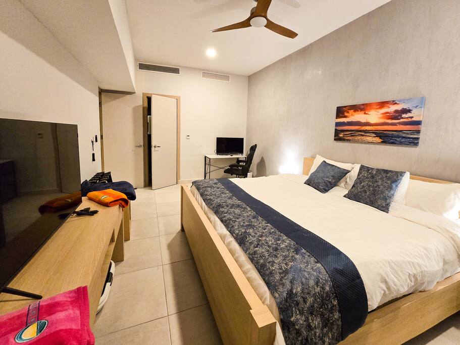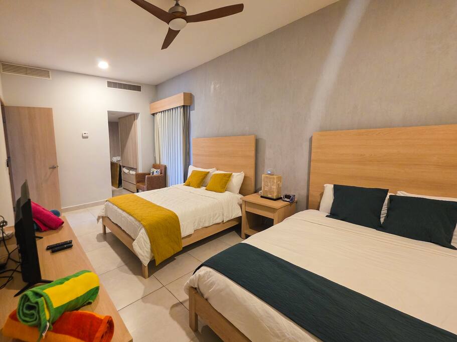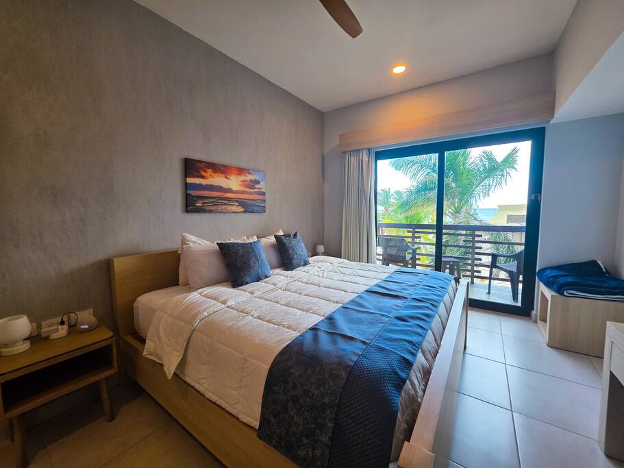 RARE FULL OCEAN VIEW! Our premier, front-row Aldea Thai condo offers breathtaking sea views. You're just a moment's walk to the sand of Mamita's Beach and two minutes from the vibrant 5th Avenue. Relax at the spectacular resort pool with its swim-up bar and poolside dining. Offering the perfect blend of beach, nightlife, and tranquility, this is the absolute best location in Playa del Carmen. Welcome to our condo, we have named it “Sol Vista del Mar”, meaning a beautiful view of the Sun and Sea. This is one of the few oceanfront condo units in Playa del Carmen that has a beach and ocean view as well as centrally located near 5th avenue, making it the perfect Playa del Carmen getaway. Strategically positioned on Calle 28th between Calle Cozumel and the beach, this luxurious retreat occupies what many consider the best location in the city. Just steps from the famous Quinta Avenida (5th Avenue), you'll find yourself immersed in a vibrant tapestry of world-class dining, with the best restaurants lining the streets. Just a few steps from the condo entrance the street turns to sand as you enter the renowned Mamita's Beach with powder-soft sands, turquoise waters and several beach clubs to choose from Sol Vista del Mar isn't just a place to stay; it's a gateway to unforgettable experiences. With a large and amazing pool, swim up bar, a convenient elevator, and modern amenities, all surrounded by culinary delights and warm, welcoming people, this retreat provides the ideal setting for creating amazing memories. Whether you're seeking relaxation, adventure, or a taste of local culture, staying at Sol Vista del Mar puts the best of Playa del Carmen at your fingertips. Imagine waking up and sitting on the balcony listening to the gentle sound of waves and watching the warm glow of a Caribbean sunrise. At Sol Vista del Mar, this dream becomes your daily reality. Our condo is perched in the coveted Gonzalo Guerrero area of Playa del Carmen, offering a perfect blend of luxury, comfort, and prime location. As you step inside Sol Vista del Mar's front door, you're greeted by an open-concept space with high ceilings and thoughtful amenities. The contemporary design seamlessly integrates with touches of local artistry, creating an atmosphere that's both sophisticated and welcoming. Smart home features include temperature control, smart locks, and an Alexa to help guide you or play music. Sol Vista del Mar’s fully equipped kitchen has everything you need to cook a meal or reheat one from any of the conveniently located restaurants. The main features include: • Full-size refrigerator and freezer • Stove • Microwave • Toaster • Keurig Coffee maker • Blender Whether you're whipping up a quick breakfast or preparing a gourmet dinner with fresh local ingredients, you'll find everything at your fingertips. The large open dining area is perfect for family meals or entertainment, with seating for six guests. If you prefer, you can have your meal by the pool or in the covered outdoor space between the pool and the lobby. The master bedroom at Sol Vista del Mar is a true sanctuary, boasting: • Plush King-size bed • Multiple sizes and types of pillows • Ample storage for clothes • Mounted TV with Roku • Independent AC unit • Private bathroom with a luxurious rain shower • Air Purifier • Private balcony The second bedroom • Two Plush double size beds • Multiple sizes and types of pillows • Ample storage for clothes • Mounted smart Roku TV • Independent AC unit • Private bathroom with a luxurious rain shower • Air Purifier The real magic happens outside. From watching the sunrise from the ocean on your balcony or enjoying a cocktail by the pool. The ocean views, nearby restaurants, bars and nightlife offer a tapestry of city convenience, sun, sand and sea, and a front-row seat to 5th avenue's daily spectacle. Located on the famous Mamita's Beach and near 5th Avenue, Sol Vista del Mar puts you at the heart of Playa del Carmen's vibrant culture. This location offers a more relaxed vibe, with an eclectic mix of upscale restaurants, charming cafes, and boutique shops just steps from your door. As evening falls, the soft sounds of live music drift up from the street, creating a magical atmosphere where one of my favorite things to do is take a walk down 5th avenue and feel the excitement from the shops and the people. Mamita's beach is a public beach, and you are welcome to take our beach chairs and beach umbrella with you as you find the perfect place and plant your toes into powdery soft sand. For an upgraded experience, with food and drinks, you won't be able to miss Mamita's Beach Club or Club Tata in front of Aldea Thai, or just next door is Coralina Beach Club which has a pool and a party atmosphere with music and entertainment. Adventure seekers will love the easy access to: • World-class snorkeling and scuba diving • Mysterious cenotes • Eco-archaeological park of Xcaret • Day trips to Cozumel Year round, Sol Vista del Mar caters to sun-lovers and food enthusiasts alike. Playa del Carmen's culinary scene is a delightful fusion of traditional Mexican flavors and international cuisine, with many top-rated restaurants just a short stroll from your doorstep. Whether you're seeking a romantic getaway, a family vacation, or a base to explore the Riviera Maya, Sol Vista del Mar offers the perfect blend of luxury, comfort, and location. Here, every moment is an opportunity to create lasting memories in one of the most beautiful destinations in the world.
